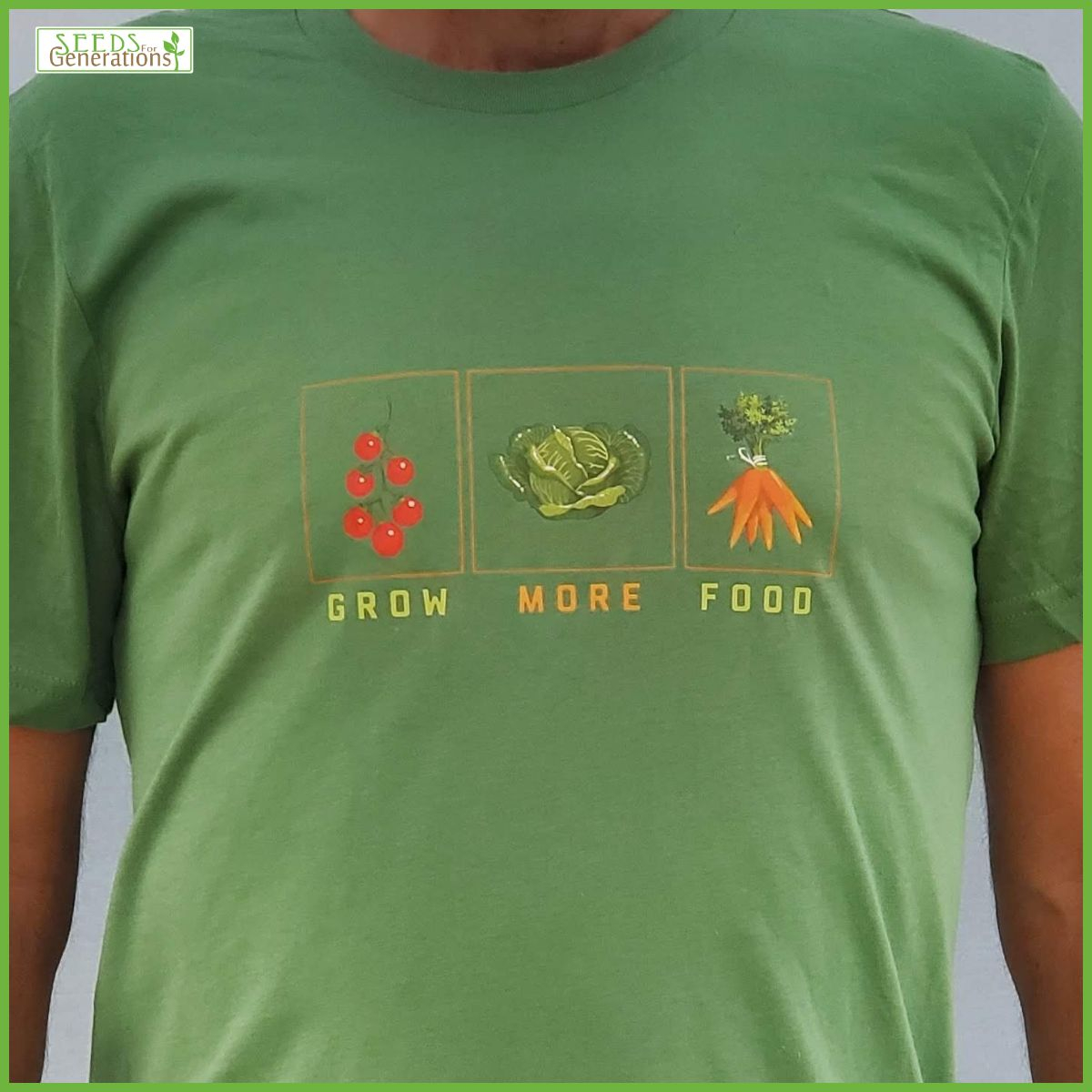 Encourage neighbors and friends to grow more of their own food too with this nature-inspired T-shirt sporting a colorful, realistic produce design. (Military green is the duller green color; leaf green is the brighter green color.) One of our personal favorite designs!